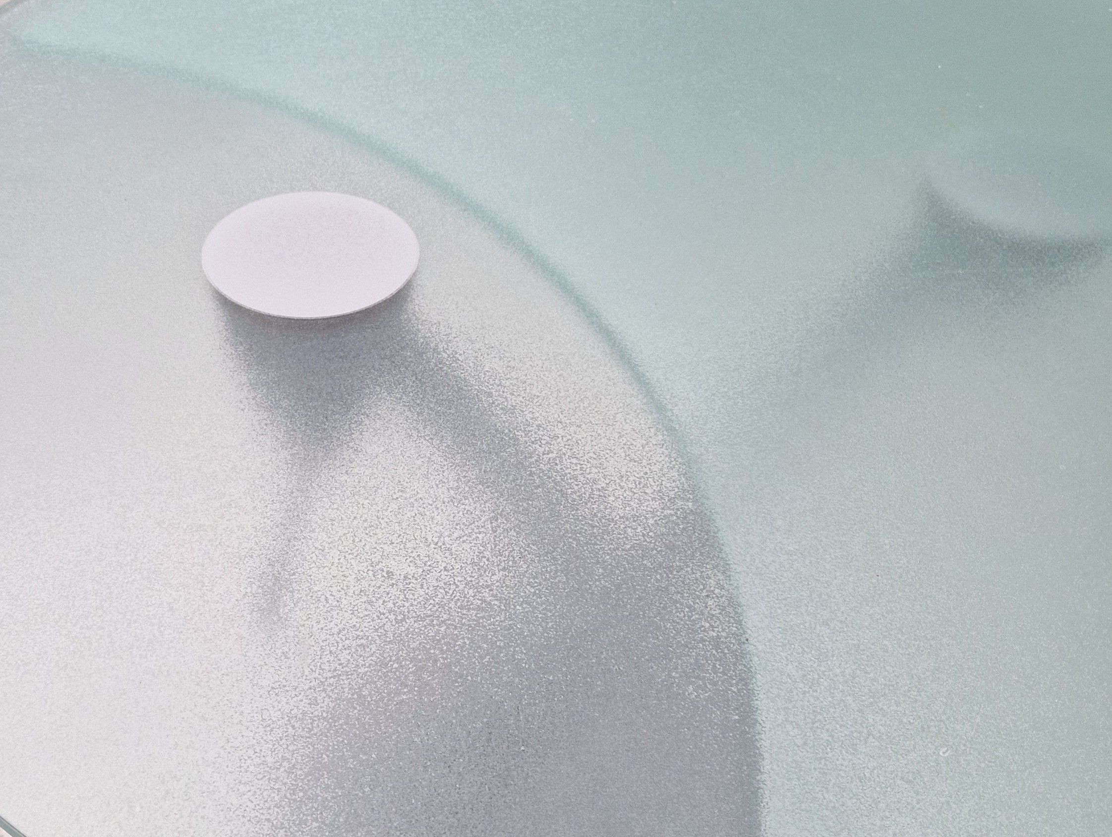 Die Tischfolie selbstklebend transparent glizernt strukturiert, 0,25mm für Möbelflächen und Tischplatten aus Glas, Holz, Metall und Kunststoff.